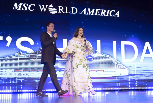 • MSC地中海邮轮备受瞩目的全新旗舰MSC亚美利加号于4月9日举行了命名盛典,MSC亚美利加号邮轮教母德鲁·巴里摩尔(Drew Barrymore)和奥兰多·布鲁姆(Orlando Bloom)共同现身仪式现场,二人之前也一起参与了MSC地中海邮轮全新推广计划“Let's Holiday”。